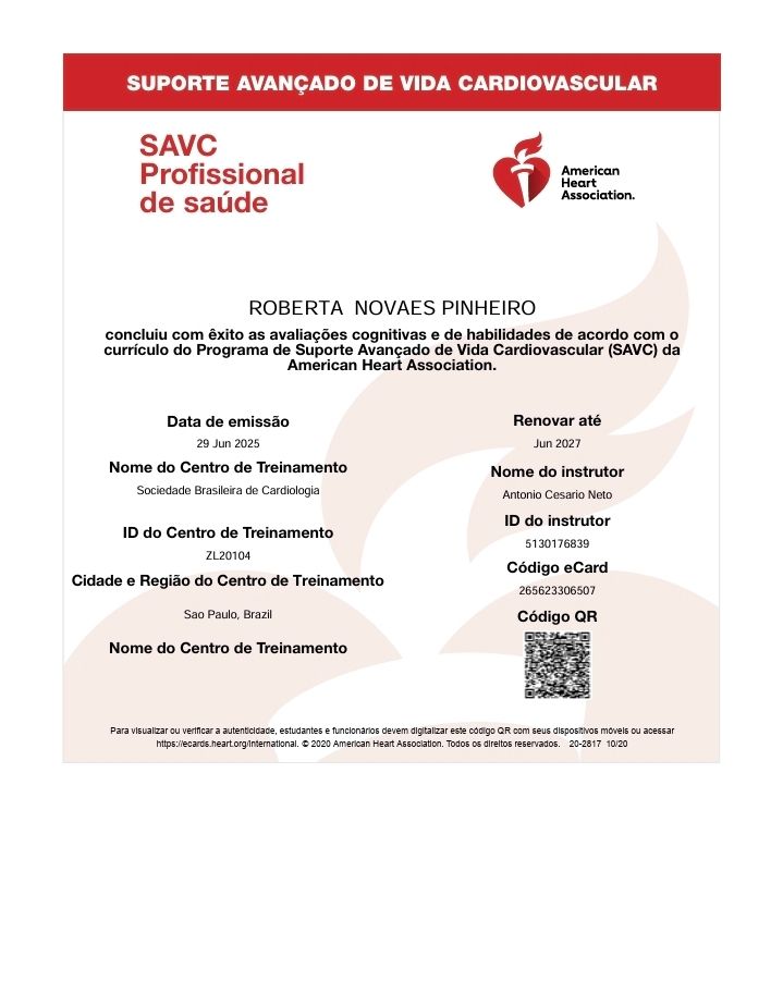 Atualmente cursando especialização em Medicina da Família e Comunidade, pela UFMG e iniciando pós-graduação em Medicina Intensiva Adulto , pela Associação de Medicina Intensiva Brasileira (AMIB) e a Faculdade EnsinE;